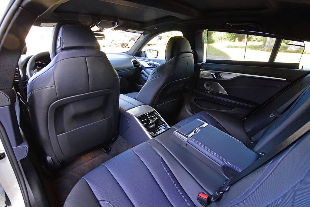 The more stunning aspects of the BMW M850i Gran Coupe’s interior is the subtilty contrasted leather colors and inserts on the sporty but comfy seats. Even sitting in the back is a delightful experience, especially considering I can actually fit in the back with my 6-foot-plus frame and long legs. The only complaint is the ingress and egress of the vehicle, where I may have bumped my head a few times and somewhat struggled to get past the B-pillar with my seat adjustment. Otherwise, the cabin of the M850i Gran Coupe is quite inviting.