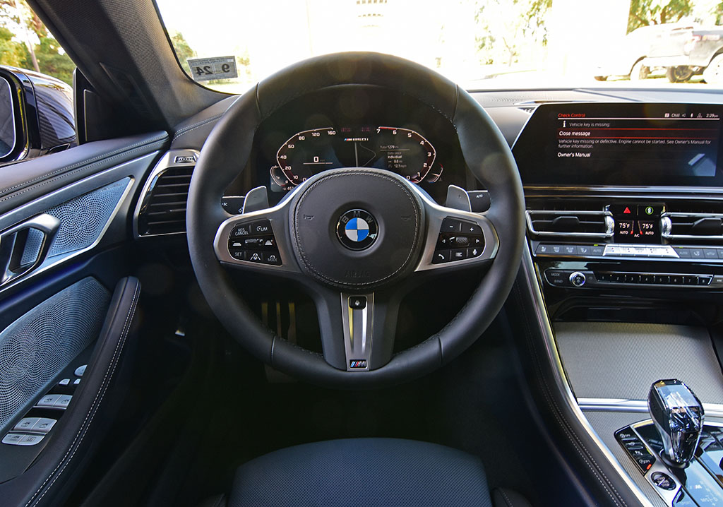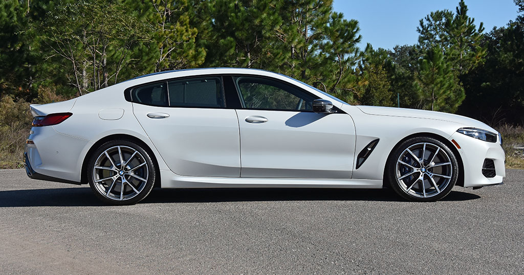 The 8 Series Gran Coupe is certainly a different animal in its extreme design. Most of the body lines contour and bend to nearly half circles to form bulging-sculpted doors. The roof is a smooth, uninterrupted curve from the lower windshield that doesn’t end until the power-opening and closing duck-billed trunk lid concludes. The M850i Gran Coupe is a stunner and looks the part to match its surprising sportscar-like performance.