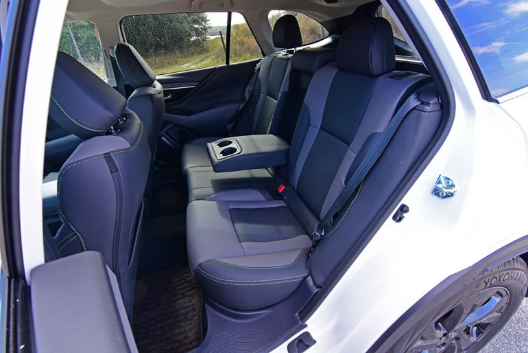 The cabin of the 2020 Outback Onyx Edition XT is much improved over the outgoing model. Many of the Subaru traits are still there with the expected good fit and finish. Oddly enough, the 11.6-inch infotainment screen seems to take up a good amount of space where it seems to intrude on front seat storage, making you feel more cramped than it actually is. There are many soft-touch surfaces to enjoy with a nice stand-out green stitching throughout unique to my Onyx Edition XT test vehicle. There is also more cargo space to use, and it remains easy to access through the power rear liftgate and a floor at just the right height.