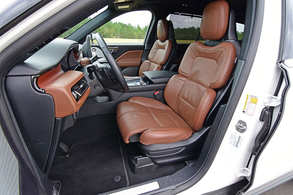In driving the new Aviator Reserve loaded up with nearly every option available for the mid-level Reserve trim level, there’s an overall softness to its character. While the 400-horsepower turbocharged V6 is eager to run, it does so without the apparent need for any additional power where the 10-speed automatic transmission, which is found in both the gas-powered Aviator and the plug-in hybrid Grand Touring model, hardly ever unnecessarily hunts for gears. The Aviator is also good for towing up to 6,700 pounds when equipped with the towing package and up to 5,600 pounds on the Grand Touring plug-in hybrid.