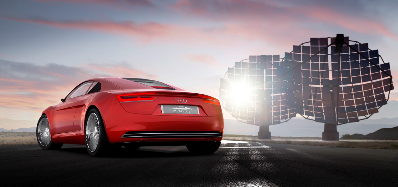 Audi presents the highlight of the IAA 2009: the e-tron, a high-performance sports car with a purely electric drive system. Four motors – two each at the front and rear axles – drive the wheels, making the concept car a true quattro. Producing 230 kW (313 hp) and 4,500 Nm (3,319.03 lb-ft) of torque, the two-seater accelerates from 0 to 100 km/h (0 – 62.14 mph) in 4.8 seconds, and from 60 to 120 km/h (37.28 – 74.56 mph) in 4.1 seconds. The lithium-ion battery provides a truly useable energy content of 42.4 kilowatt hours to enable a range of approximately 248 kilometers.