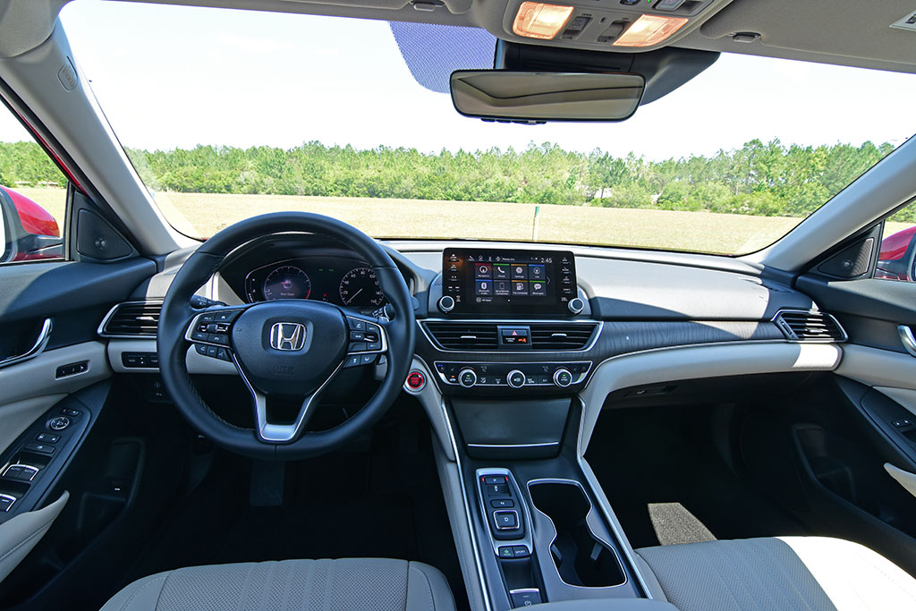 Pricing of the 2020 Honda Accord is very good, starting at $24,020. Where the Accord really shines is the top-level Touring trim with the stronger engine coming in at an as-tested price of $37,030, which undercuts a loaded Toyota Camry V6 by almost $3,000, and you have more interior space in the Accord.