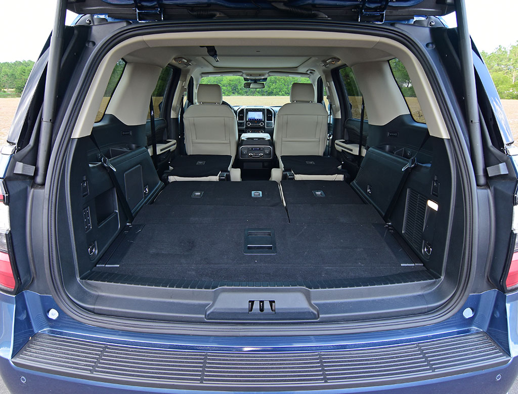 Adding in the versatility of a truck and many trim level configurations is a forte of the Expedition, where it attempts to appease many needs for families and workers. The cabin of the Expedition is spacious for both the standard wheelbase and the extended Expedition Max models. Taking versatility to a new level, the new Expedition also permits flat-folding of the third row of seats to open up the amble cargo space from the all-seats-in-place 19.3 cubic feet to a vast 104 cubic feet with all seats folded for the standard-wheelbase Expedition. Get the Expedition Max, and those figures increase from a seats-in-place 34.4 cubic feet to 121 cubic feet with the seats folded. Also, folding of the second and third-row is easy due to the power-folding system found on my loaded Expedition Platinum test vehicle. A power-folding third-row is a standard feature on all new Expedition trim levels.