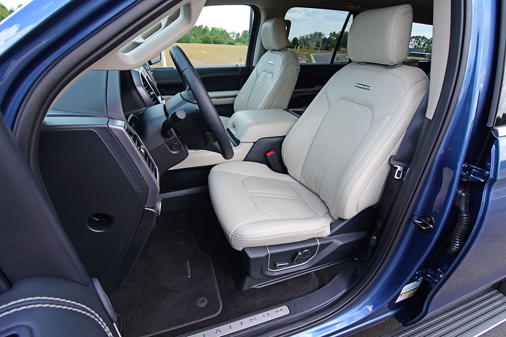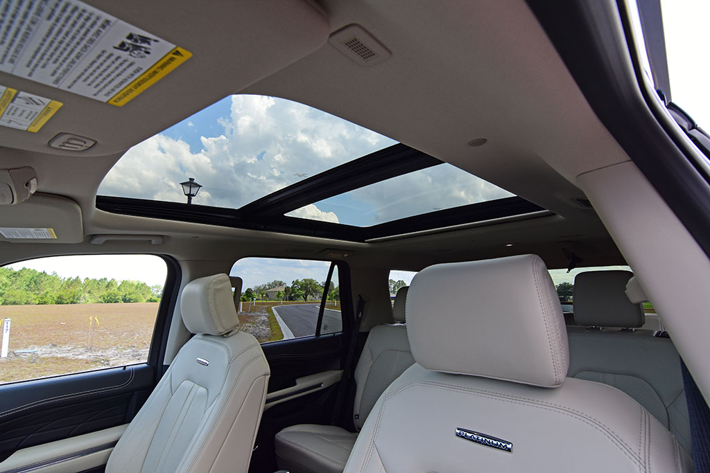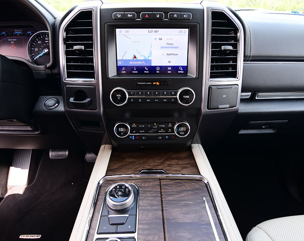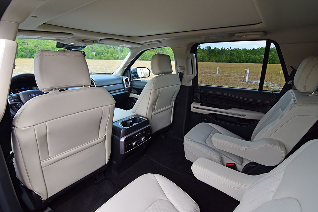 Seating areas are spacious and comfy, suiting the needs for those who want to drive cross country or at least up to 600 miles, which is the average range of the Expedition thanks to a large 25-gallon tank or an even bigger 30-gallon tank in the Expedition Max. Speaking of gallons, the Expedition is surprisingly fuel-efficient for such a large body-on-frame SUV getting 17 mpg city and 22 mpg highway for my 4×4 Platinum test vehicle. Opt for a 4×2 Expedition, and you’ll get a better highway figure at 24 mpg.