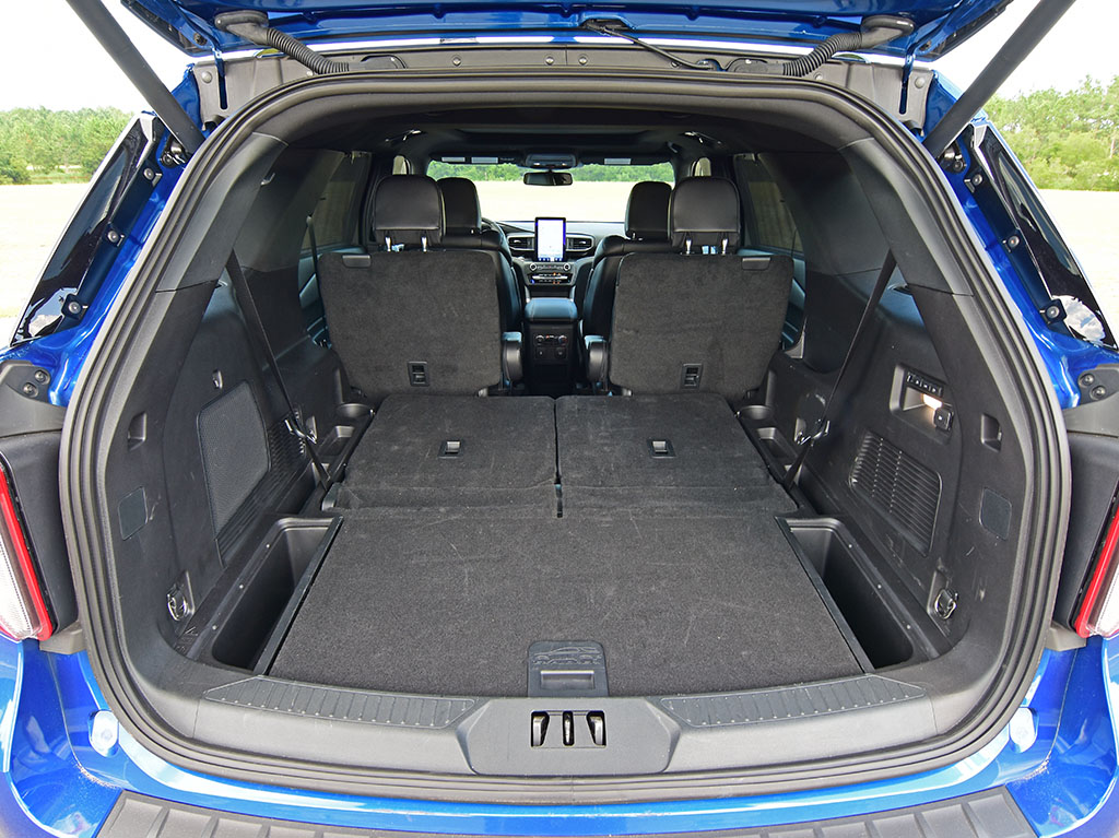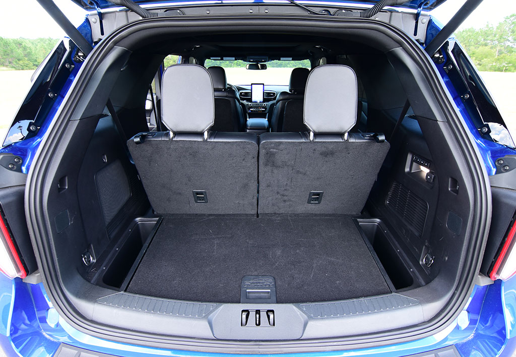 Cargo area is improved over previous Explorers and is among the best in its class behind the third-row seats. The third-row seats are the only ones with a power-fold system as the second row requires a manual lift of a side lever to fold them down, opening up over 87 cubic feet of cargo space accessed by a hands-free power liftgate.