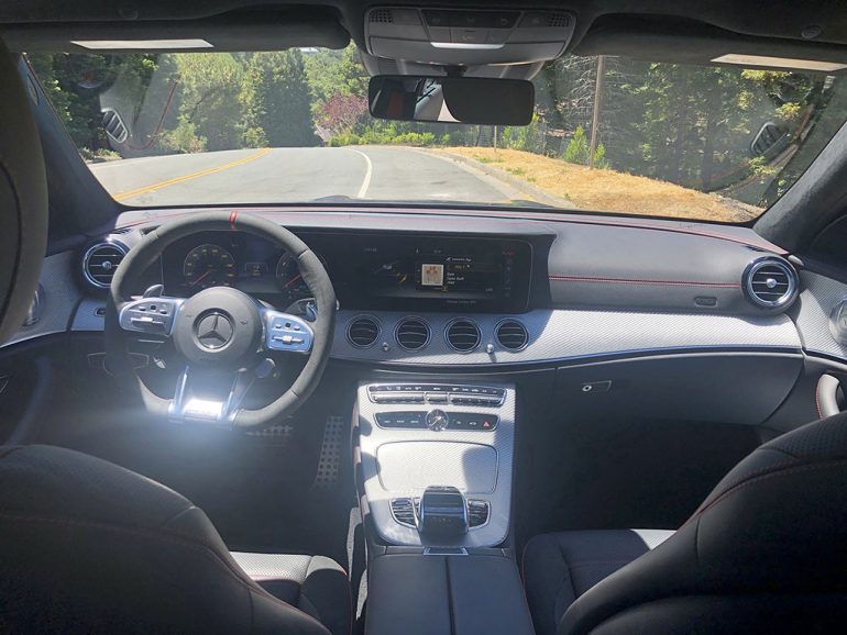 Let’s start with the motor, an ‘AMG-enhanced’ three-liter turbocharged inline 6-cylinder delivering a healthy 429 horsepower and 384 lb-ft of torque, while managing a commendable 24 mpg on average. It doesn’t pin you back in the seat like an AMG V8, but the lightning-fast Speedshift 9-speed transmission and 4Matic drivetrain are both optimized for quick acceleration and do a stellar job backing up this smooth, straight-six from 0-60 mph in just over 4 seconds. Like all AMG Mercedes offerings in this middle range (35, 43, and 53 models), The AMG Dynamic Select is key to making the car really come alive. Selecting ‘Sport’ for a more spirited response and ‘Sport +’ when you want to be on the edge, both make driving so much more fun than leaving it in the default ‘Comfort’ mode. No matter what mode you do choose, there are still settings to tweak suspension stiffness, steering, transmission & engine aggressiveness, and to open or close the exhaust baffles a bit. Speaking of exhaust sound, the E53 optional Performance Exhaust System has a unique howl that really grew on me. It’s obviously less throaty than E63 big brother, but (call me crazy) it also sounds just a bit more like an F1 car.