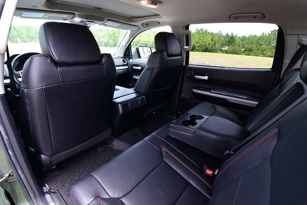 Out on the road, the Tundra TRD Pro leans into turns and doesn’t promote pushing it hard through bends with somewhat of a static lean, which you expect out of a Baja racing truck. Otherwise, the Tundra TRD Pro fits the bill to have a smooth and mostly soft ride quality that soaks up road imperfections, which gives way for rather comfy off-roading at speed through uncertain terrain.