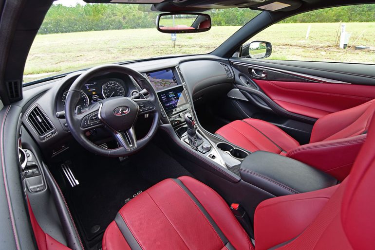 As explained in my previous reviews of the Q60 Red Sport 400, the DAS is somewhat of a mixed bag even though it eliminates the harshness you may get from the road that transmits to some steering wheels. On my test vehicle this time, only missing the optional ProActive package (includes DAS, adaptive cruise control, active blind-spot monitor system, and automatic highbeam headlights), it was the more desirable vehicle as the “normal” steering system proves to be just fine and has more of a natural feel as expected in a sporty luxury coupe – especially one with 400 horsepower.