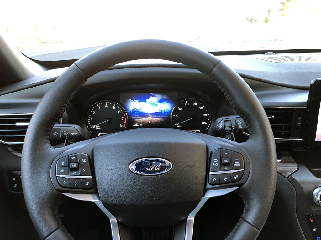 So how is it to drive? Pretty much exactly like a standard Explorer, with very little clues beyond the tiny improvement in fuel economy (averaging around 28 mpg vs. 24 mpg for the equivalent EcoBoost 4 cyl model) and a small ‘Hybrid’ badge on the back to let others know you’ve chosen the greener version. There is no sense of wooden brake pedal feel you might get from a plug-in hybrid, but if you try to soft-pedal around in Eco mode, the transition from pure electric to the gasoline engine kicking-in is very noticeable. Otherwise, the Hybrid’s ride, handling, and steering are all on par with the standard gasoline-powered model.