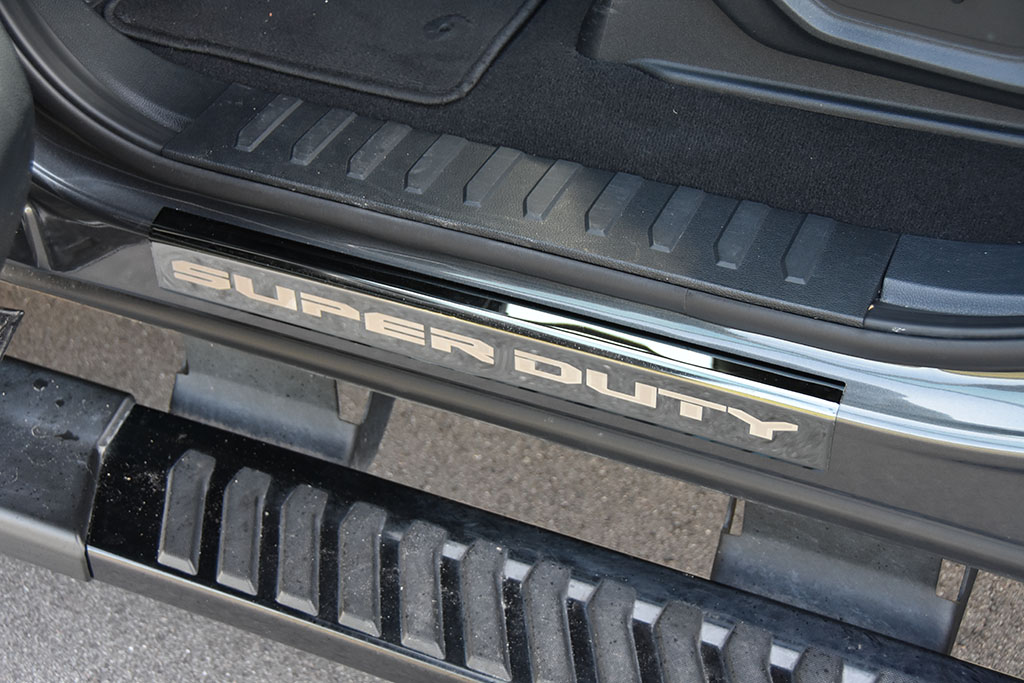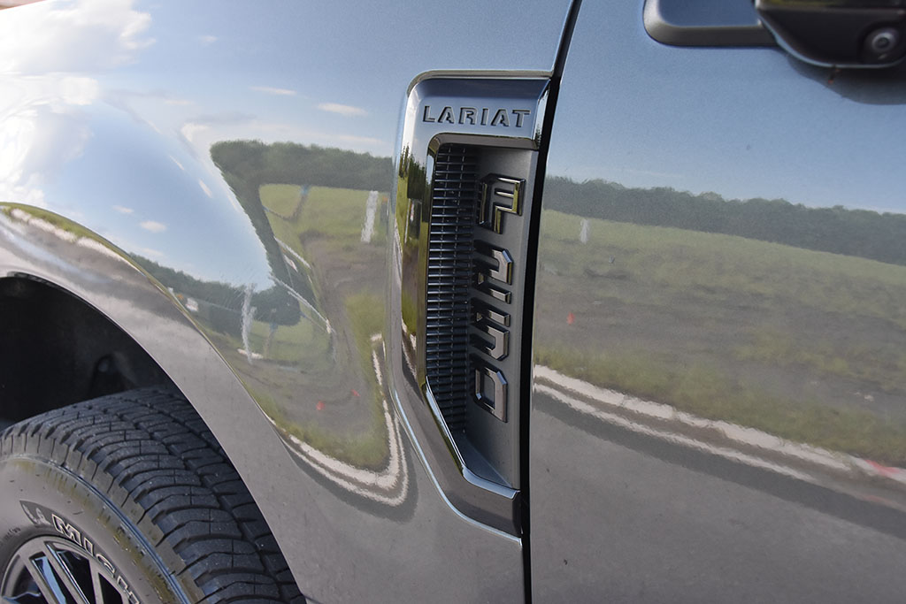 Highlighted equipment on my F-250 Super Duty Lariat test vehicle includes leather-trimmed power-adjustable ventilated and heated front seats, heated steering wheel, navigation, automatic LED headlights with auto highbeam, LED fog lights, dual-zone automatic climate control, panoramic sunroof with power sunshade, dampened and remote-open tailgate, remote start, 360-degree camera system, blindspot monitors, lane departure warning, and plentiful leg and shoulder room up front and out back.