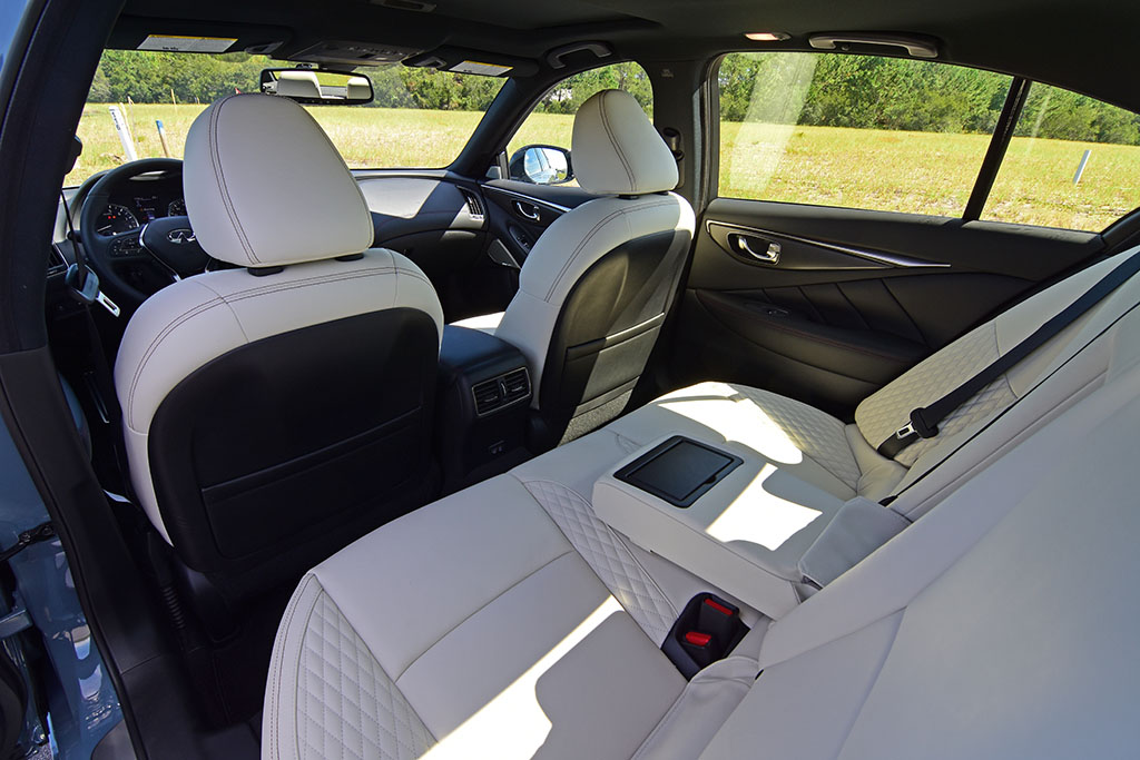 The updated interior colors and materials also attempt to keep the Q50 running with the competition, but such subtle updates only do so much for a platform that has aged. Pricing for the Q50 remains competitive and undercuts some of its competition with a starting price of just $36,600. Moving up to the Q50 Red Sport, which adds 100 horsepower from the base 300-horsepower V6 twin-turbo engine, you’re looking at paying at least $55,750. My AWD Q50 Red Sport test vehicle comes to a respected price of $62,065.