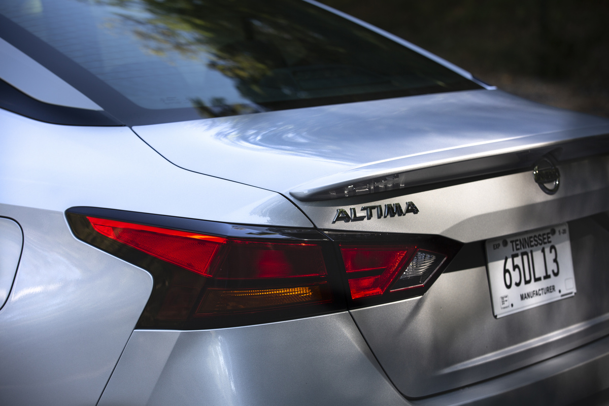 Altima SR adds 19-inch aluminum-alloy wheels, unique rear diffuser color, sport suspension (FWD only), sport interior with sport seat, paddle shifters, leather-appointed steering wheel, LED projector headlights, dark chrome grille, Nissan Safety Shield 360, exhaust finishers, black side mirror caps and body colored door handles.