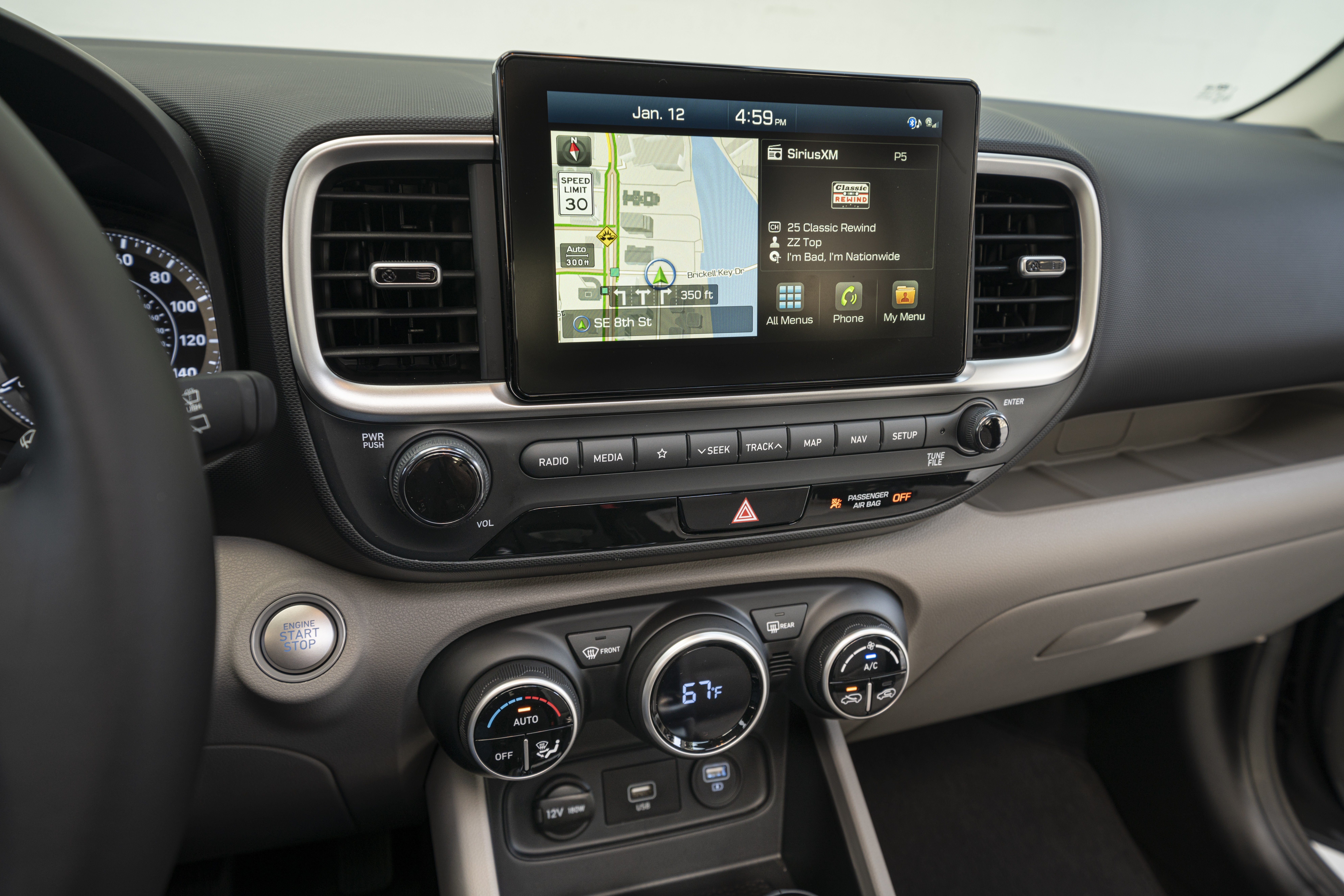 The Venue’s interior shines, especially in light of the price point and subcompact segment classification. Front seat passengers are given plenty of room. The driver will appreciate the leather-wrapped steering wheel and shift knob. It is amazing how much those two touchpoints add to the overall driving perceptions. Yes Hyundai cuts corners, for instance the base model has no center armrest, but the overall appearance and comfort of the interior is a step above the base models of many competitors and just about every entry-level vehicle made only a few years ago.
