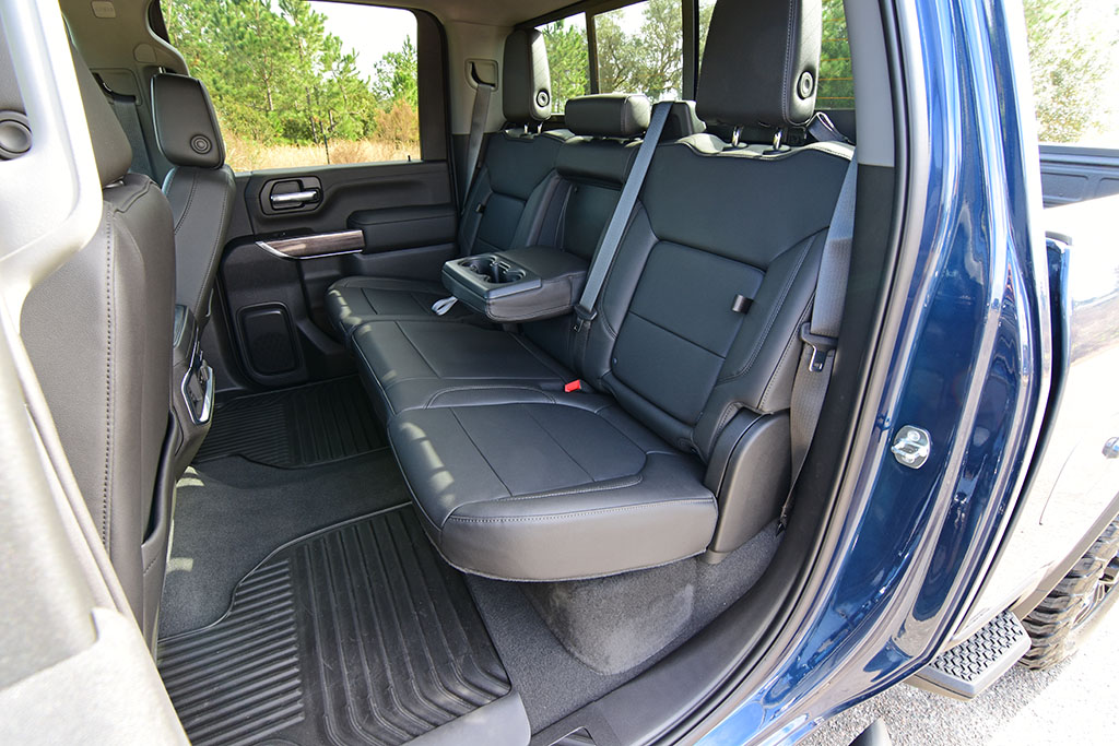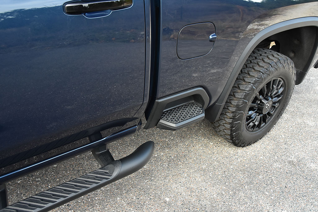 The seating areas are large up front with heating and ventilation. The rear seating area is like a couch with the unique storage cubbies embedded in the seatbacks of the two rear outboard heated seats. The spread bed and cab include the proper connections and hookups for a fifth-wheel trailer or gooseneck as well as a handy power outlet to power just about any power tool you can think of. Probably the most interesting part of the cab is the remote released and power lift tailgate, which you can power-close at the touch of a button on the dashboard, keyfob, or directly on the tailgate. Accessing the bed is done mostly the traditional methods but at the aid of integrated sidesteps at the front and rear corners of the bed.