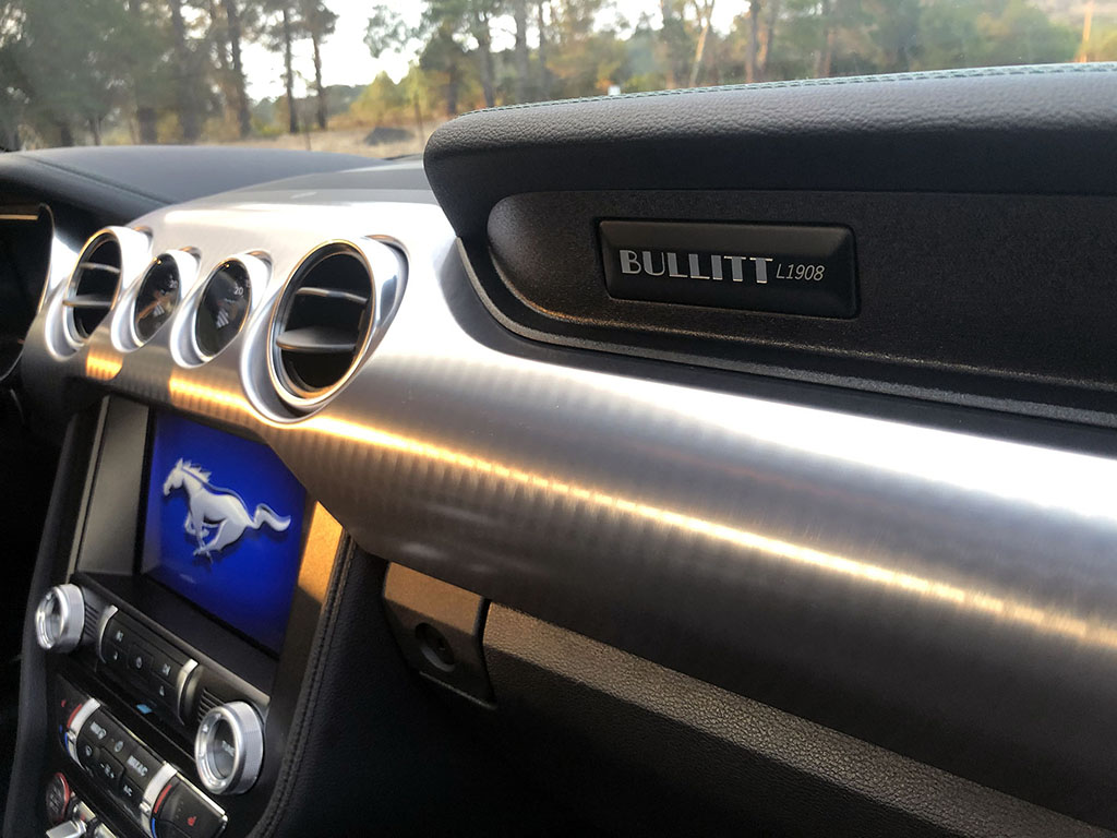 Why is this Dark Highland Green machine so beloved and so much more than just a tarted-up Mustang GT? Let’s begin with the Bullitt’s looks, which go beyond that unique paint job. Start with a blacked-out grille, void of a galloping pony badge, unique 5 spoke black wheels (emulating the Torq Trust versions seen in the 1968 film), red 6-piston Brembo’s, subtle chrome trim accents, and a Bullitt logo faux fuel cap on a decklid that has the spoiler deleted. It’s by far the most ‘subtle-and-yet-sinister’ look of the entire Mustang line up, and she turns far more heads as a result. Yes, this car is also available in Shadow Black, but on a Bullitt edition, why on earth would you tick that box? Once you climb inside, there are unique green-stitched seats, aluminum Bullitt badging, and a white cue ball shifter that feels perfect in your hand… And you’ll get very acquainted with that shift knob, as the Bullitt is only available with a 6-speed manual transmission. The whole package just exudes McQueen ‘cool’ in all the right ways.