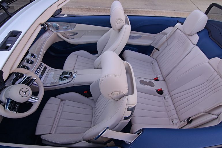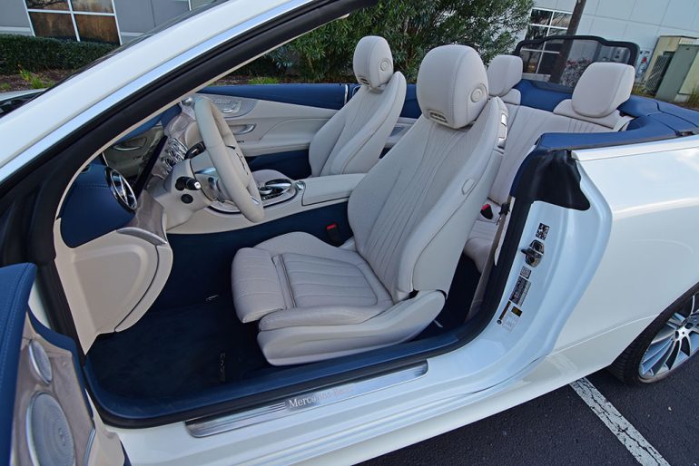 The seating areas for the E450 Cab, heated/ventilated/massaging up front, is quite a special space that pampers the front occupants much more than those in the somewhat cramped back two seats. The rear seating, while larger than that of a C-Class Coupe and Convertible, has more usable legroom but still doesn’t welcome long trips of setting in such a space.