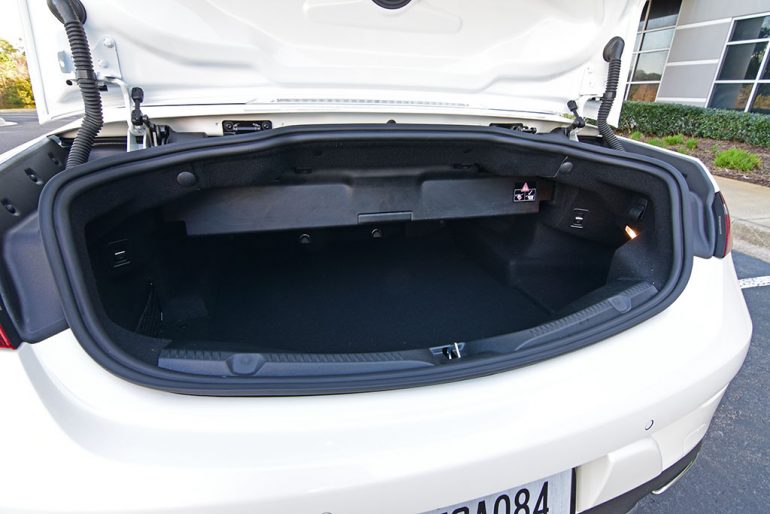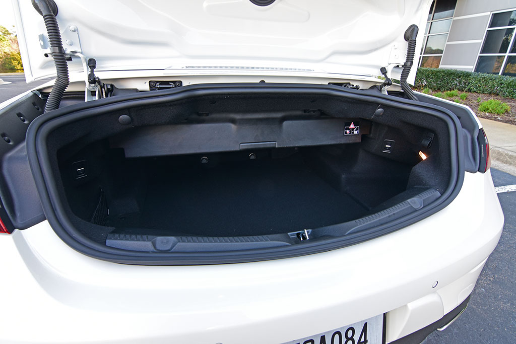 Cargo room is cut short as well, just as you would expect from a convertible vehicle. Though, Mercedes makes a clever way of accessing a bit of extra trunk space if you don’t let the top down by a motorized top divider that can retract out of the way by the push of a button.