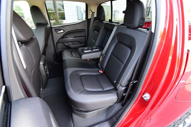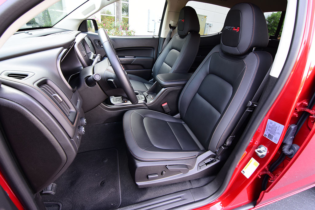 The expected creature comforts are included in the GMC Canyon AT4, such as leather-appointed heated front seats with 6-way power adjustability (w/power lumbar) for the driver’s side and just 4-way power for the passenger. There are several soft-touch areas in just the right places up front but most of the door trim and surrounding lower dash are all of hard plastics.