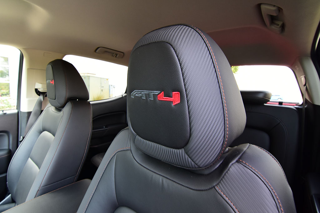 As far as changes go on the inside of the new GMC Canyon AT4, you will be forced to look closely to find the “AT4” embroidering in the seat headrests and subtle accented Kalahari