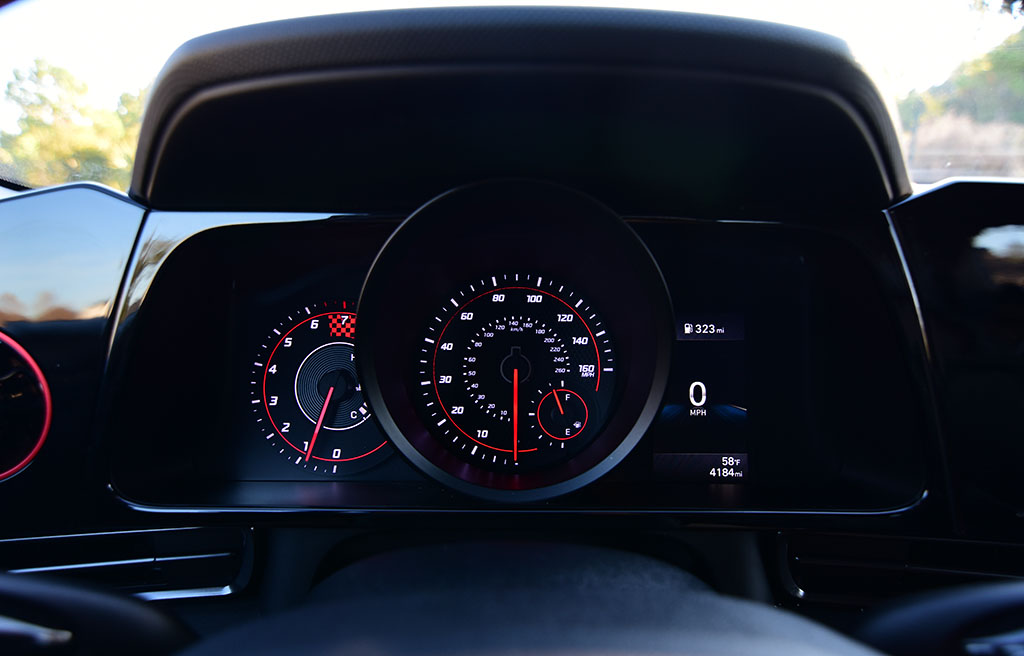 To keep pricing down, the Elantra N Line doesn’t get the benefit of some of the other trim level’s desirable features, such as the 10.25-inch digital gauge cluster, smart cruise control, or leather-trimmed seats. Instead, the Elantra N Line gets analog gauges, heavily bolstered sporty cloth heated seats up front, and poor-performing halogen projector headlights. You must move to the Limited trim or Elantra N to get better-performing LED headlights, something I think should come standard across the board for a new vehicle in 2021.