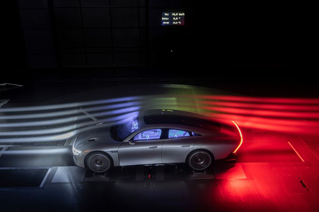 How does Mercedes-Benz muster over 620 miles of EV range out of the Vision EQXX Concept? Well, first, look at it! The Vision EQXX Concept looks like no other modern-day Mercedes-Benz giving it a remarkable drag coefficient of just 0.18. That’s unheard of in any street-legal vehicle! That drag coefficient is all part of the design shape and elongated rear end. Air is directed around the front wheels to form a curtain and keep the air attached to the side and flowing out back with reduced turbulence thanks to the long tail of the vehicle. There’s active aero, too – an active rear diffuser that lowers and extends around 40 mph to keep the air underneath equal to that of the air streaming off the top and sides.