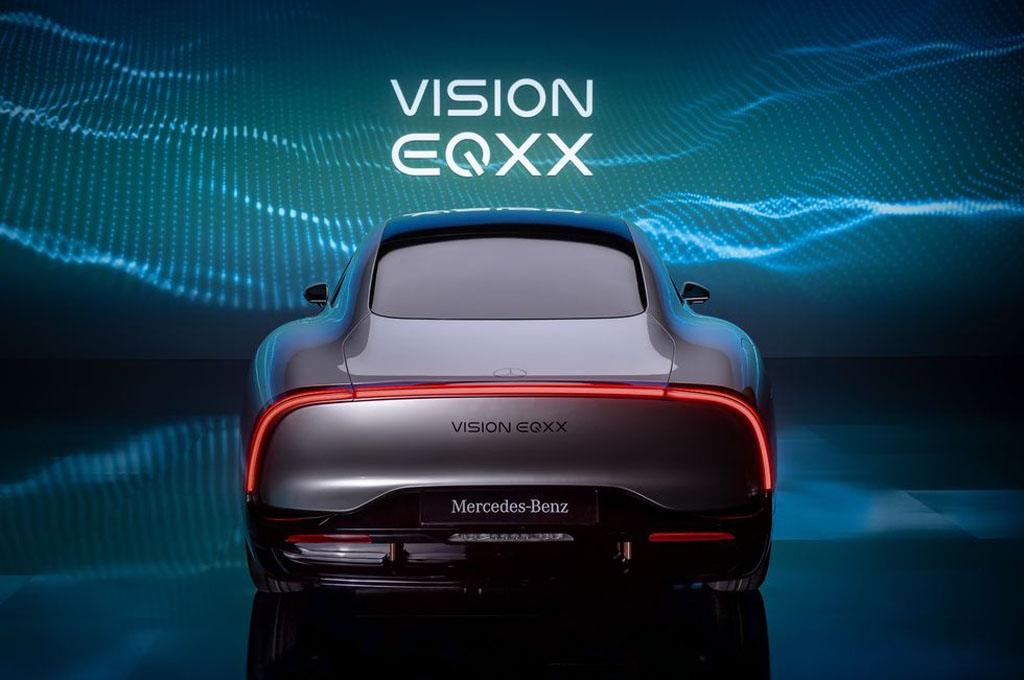 Speaking of the motor, what powers the Mercedes-Benz Vision EQXX Concept is a single 200-horsepower motor mounted at the rear to power the rear wheels. That may not seem like a lot of power but through clever weight reduction from the aluminum body structure to lightweight and ultra-low rolling resistance Bridgestone Turanza tires, the Vision EQXX Concept is claimed to have a battery that weighs 30% less than the one in the current Mercedes-Benz EQS. That weight saving is also in part thanks to the size of the Vision EQXX Concept, which is more on the compact size closer to a current Mercedes C-Class sedan. Basically, don’t let the long tail trick you, this is something much smaller than an S-Class! Mercedes has even done wild things like utilizing a lightweight top that is consisted of sugarcane waste reinforced with carbon fiber.