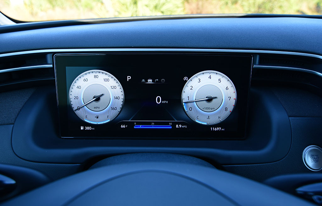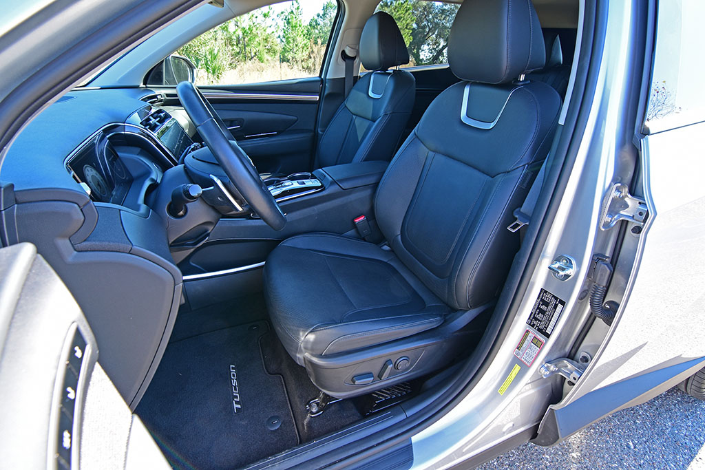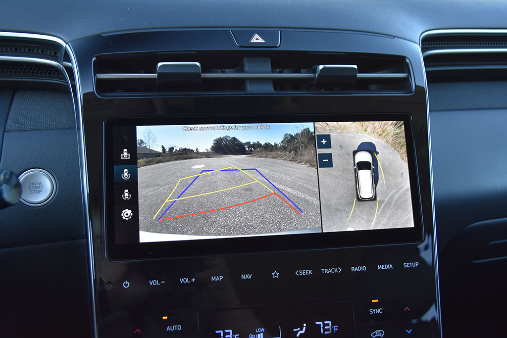 The cabin of the new Tucson Limited AWD is identical to what I experienced in the Hybrid model. There’s a bounty of features to add to its value perception, such as heated and ventilated front power seats, heated rear outboard seats, heated steering wheel, a 360-degree camera system, a 10.25-inch touchscreen infotainment system with navigation, Android Auto, and Apple CarPlay integration, and a 10.25-inch digital gauge cluster with a blind-spot view monitor system that displays the live blind-spot image feed upon signaling.