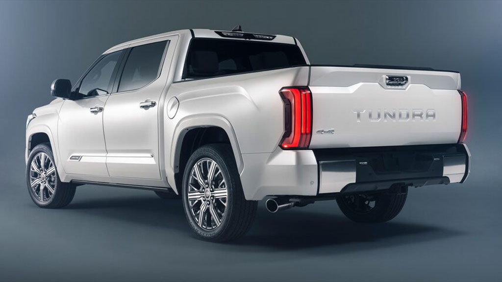 The 2022 Toyota Tundra Capstone trim offers up several unique amenities that make it more luxurious starting with having the i-Force MAX twin-turbo V6 hybrid powertrain that boasts 437 horsepower and 583 lb-ft of torque. Also, the Tundra Capstone will only be available in the CrewMax body style as we expected but it does something special with the bodywork with a limited selection of colors, unique 22-inch wheels that fit the part of a “luxury-like” truck, body-colored grille frame and wheel arches, and chrome accents including the mirror caps, door handles, and a side body panel accent.