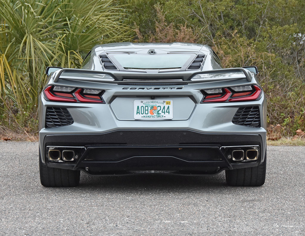 In my latest brush with the Corvette, I get the 2022 model year which remains mostly the same when it came out for the 2020 model year as a newly redesigned vehicle featuring the all-new mid-engine architecture. For 2022, the Corvette gets the availability of a few new colors and carbon-fiber trim pieces. Otherwise, there’s a welcoming presence of the formidable 6.2-liter pushrod V8 engine mounted just behind the passenger compartment that sports 495 horsepower and 465 lb-ft of torque in my test vehicle thanks to the optional Z51 package and its performance exhaust setup. Power is sent to the rear wheels meeting the pavement with 305-patched 20-inch performance run-flat tires (19-inch fronts) just after the snappy-shifting 8-speed dual-clutch transmission does its job to fire off shifts nearly as fast as Porsche’s PDK units.
