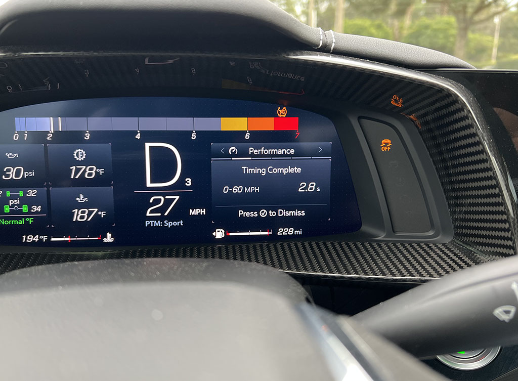 There’s also a lot of hidden innovative tech that’s afforded its engineers to include it all without adding a six-figure price. Things like the brake-by-wire system still provide ample braking if brake fluid boils during hard track sessions – basically, the electronic brake booster/pump will add extra pumping to send the trapped air through the lines if the brake fluid ever boils instead of hitting an ‘end’ as traditional braking systems do when the fluid gets extremely hot and starts to boil and your brake pedal goes to the floor.