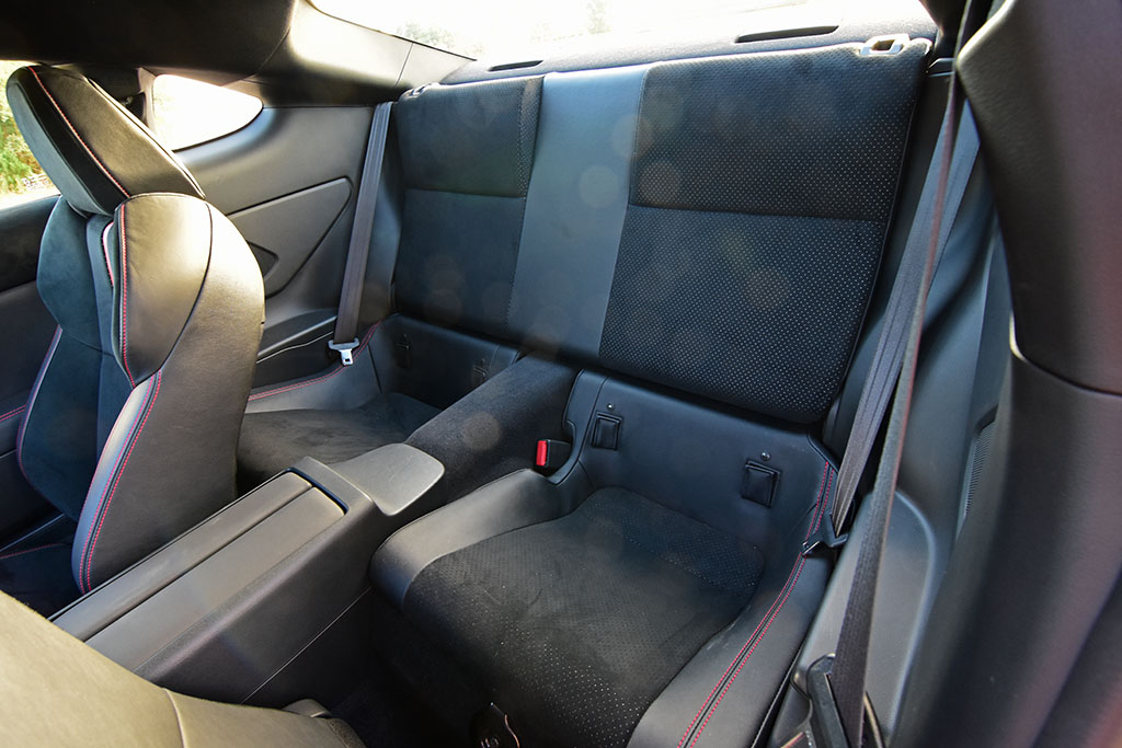 The seats remain to be quite sporty and supportive with a welcoming look to fit the sporty theme of the BRZ. The accented red stitching and cloth inserts all conform to the sports car premise. The rear seats, which are basically useless for anyone besides a very small child or a smaller child car seat, fold down to add space to the otherwise small 6.3 cubic feet of cargo space in the trunk.