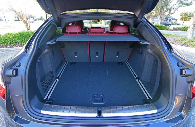 The interior of the BMW X4 is surprisingly comfy and spacious up front. However, in the back, the headroom is cut down due to the sloping roofline but there is just enough space for individuals at or just under 6 feet tall. Otherwise, the back seats provide somewhat usable legroom and hip room. Cargo capacity is cut short as well from the roofline giving you 18.5 cubic feet. Fold the 40/20/40-split rear seat backs down and you have just over 50 cubic feet of cargo room that can be accessed by the power rear liftgate, which somewhat makes up for the utilitarian usefulness of the X4.
