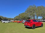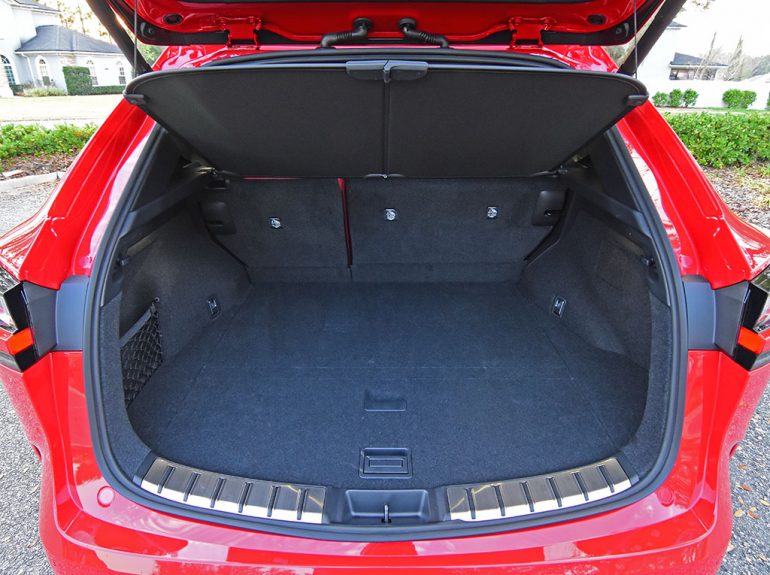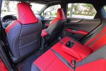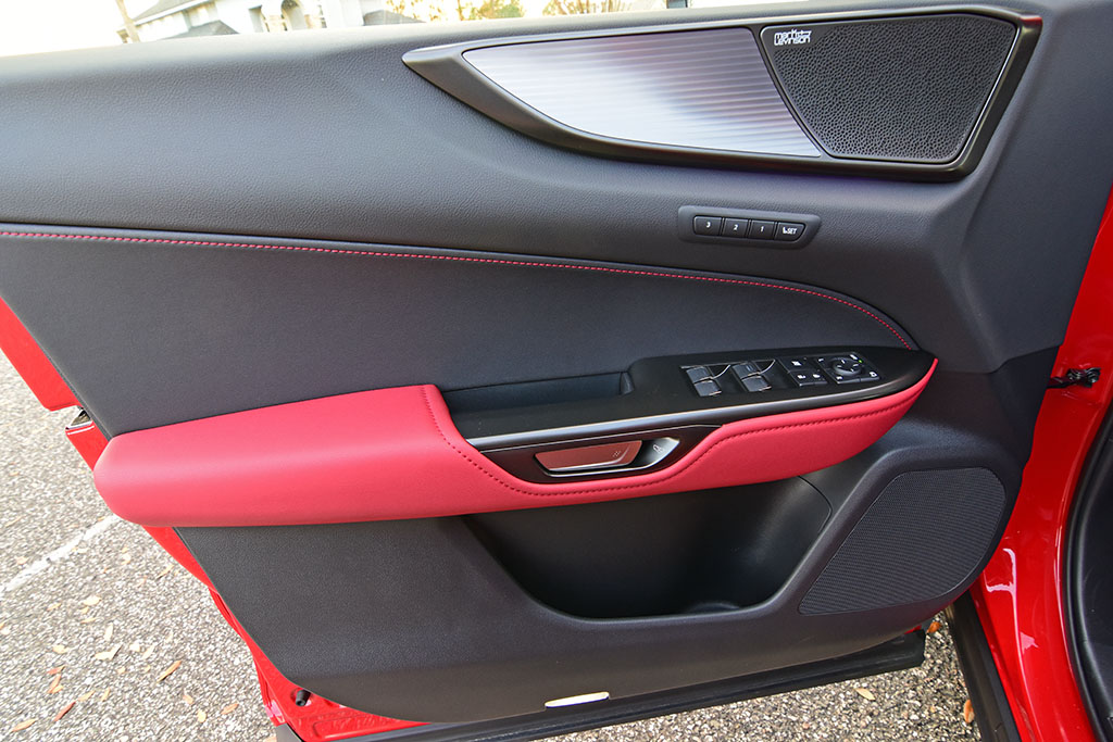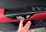 Other highlights of the interior include several soft-touch and accented dashboard surfaces, the sporty red perforated leather seats up front that are heated and ventilated, thematic ambient LED interior lighting, a 17-speaker Mark Levinson audio system, color heads-up display, panoramic moonroof with power sunshade, and new electronic/digital door handles/latches that open with a button press but each door has an integrated latch-pull in case of an emergency when the electronic latches do not work, or power fails. There’s also the mention of the steering wheel buttons having a clever touch-sensor that indicates your finger resting on a certain function displayed in the color heads-up display so you don’t have to look down to see which function your finger is about to depress.