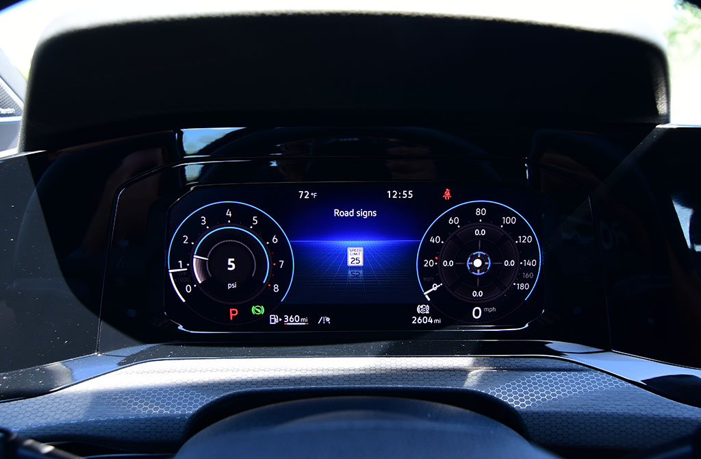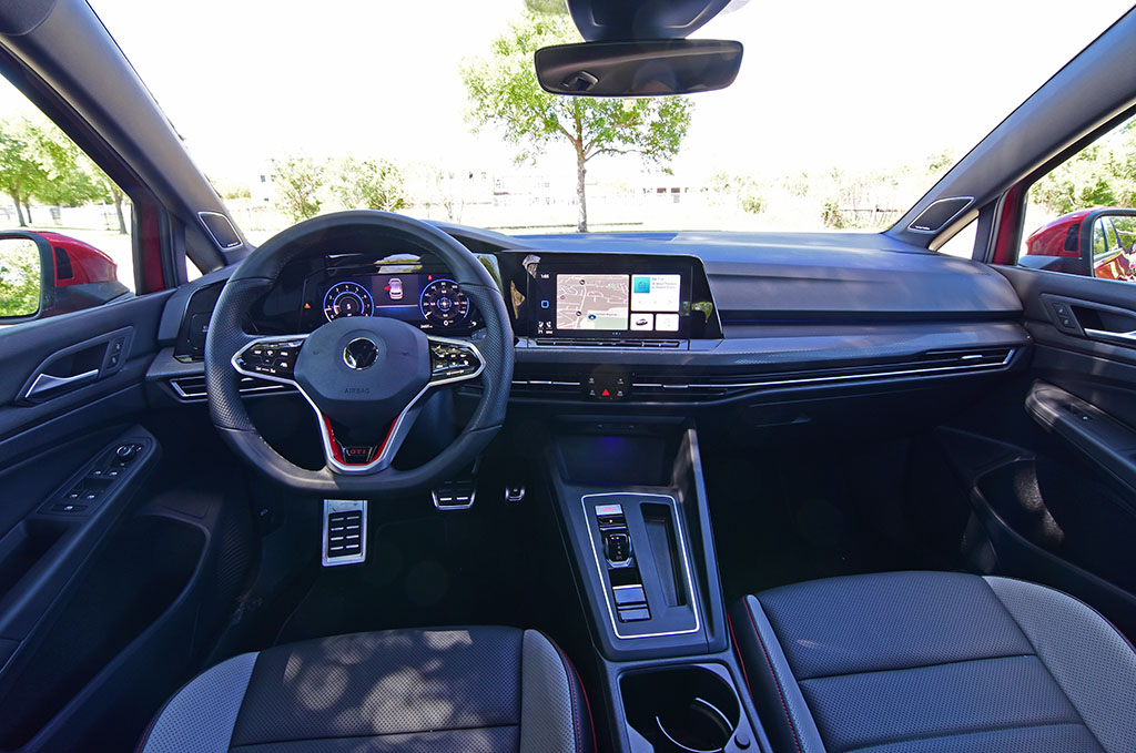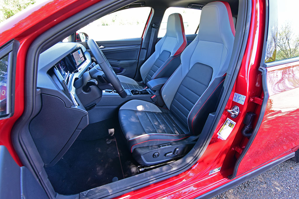 It’s obvious that Volkswagen attempted to make the dashboard a minimalist design but majorly failed to consider user-friendliness or the avoidance of distraction, even if some of the menus lock you out upon driving. It’s rather a shame that the infotainment system is such a disaster because the new VW Golf GTI Autobahn is such a joy to drive, quite accommodating with its seats, and offers versatility and added cargo room of a hatchback. There’s the expected set of active driving safety features, including adaptive cruise control, blind-spot monitors, forward collision warning with emergency braking, and lane departure warning/keep assist. The GTI Autobahn also gets a color heads-up display.