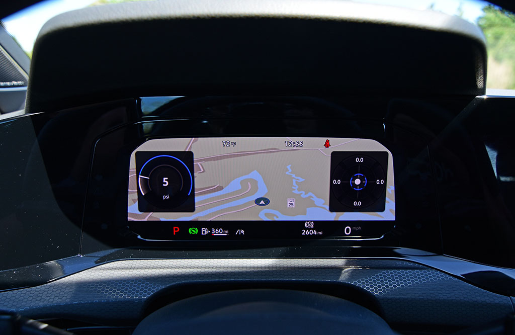 While the touchscreen can handle most interactions and vehicle settings, there’s a rather small touch-capacitive area for the volume control and temperature control that is often too sensitive and difficult to use. Not to mention, those controls do not light up at night leaving you to guess where to place your finger to do something as simple as turn up the volume or adjust your climate temperature. I’m not quite sure what Volkswagen was thinking here, nor am I sure that having such a limited amount of touch buttons is conducive to keeping your focus on the road. I even had a hard time finding the menu to disable traction control, which is hidden in the “Exterior” vehicle settings menu under “Braking.” Utterly ridiculous!