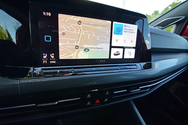 Where things start to go off the rails is in the department of the updated tech. The new Volkswagen Golf GTI Autobahn lacks any physical buttons or knobs and instead opts for a slew of capacitive touch buttons and areas that play into a trap of being part of one of the worst modern-day infotainment systems around. The only physical switches are the window switches and the only knob you’ll find to adjust the power rearview mirrors. Unfortunately, the new 2022 VW Golf GTI Autobahn and other Golf family vehicles with the new updated infotainment system and its 10-inch Discover Pro capacitive touchscreen have a never-ending learning curve and cumbersome interface. There is a natural voice control system that can be prompted by saying “hey Volkswagen” but it’s recognition is slow and often fails to recognize your voice command accurately.