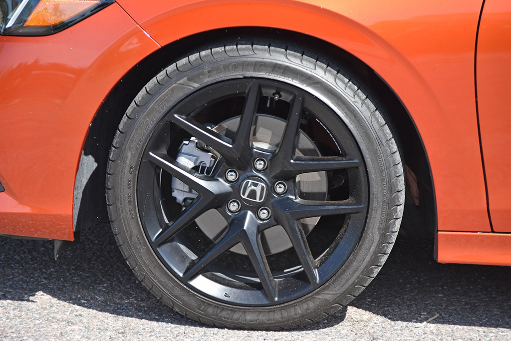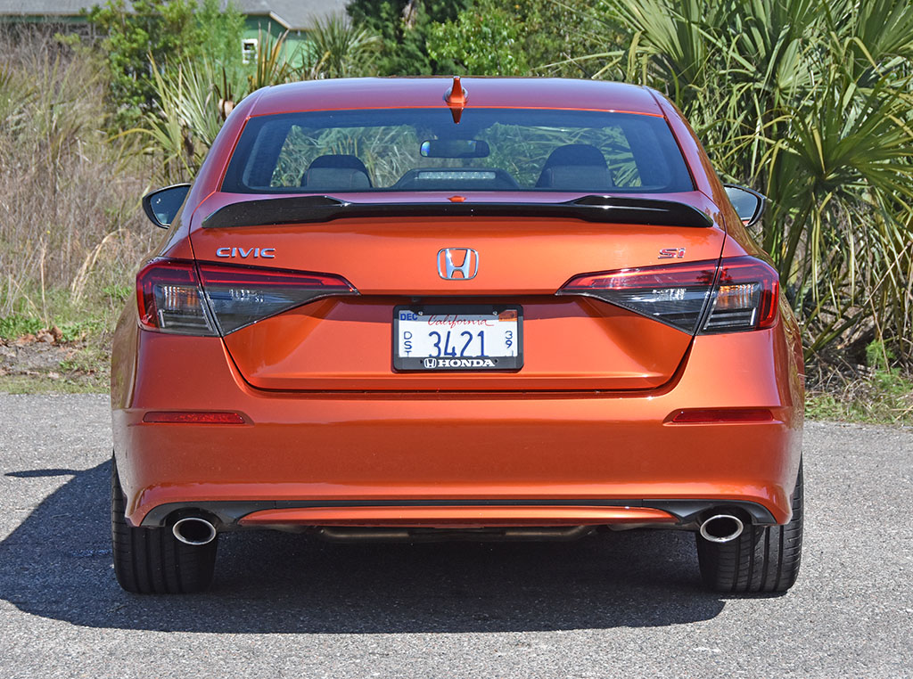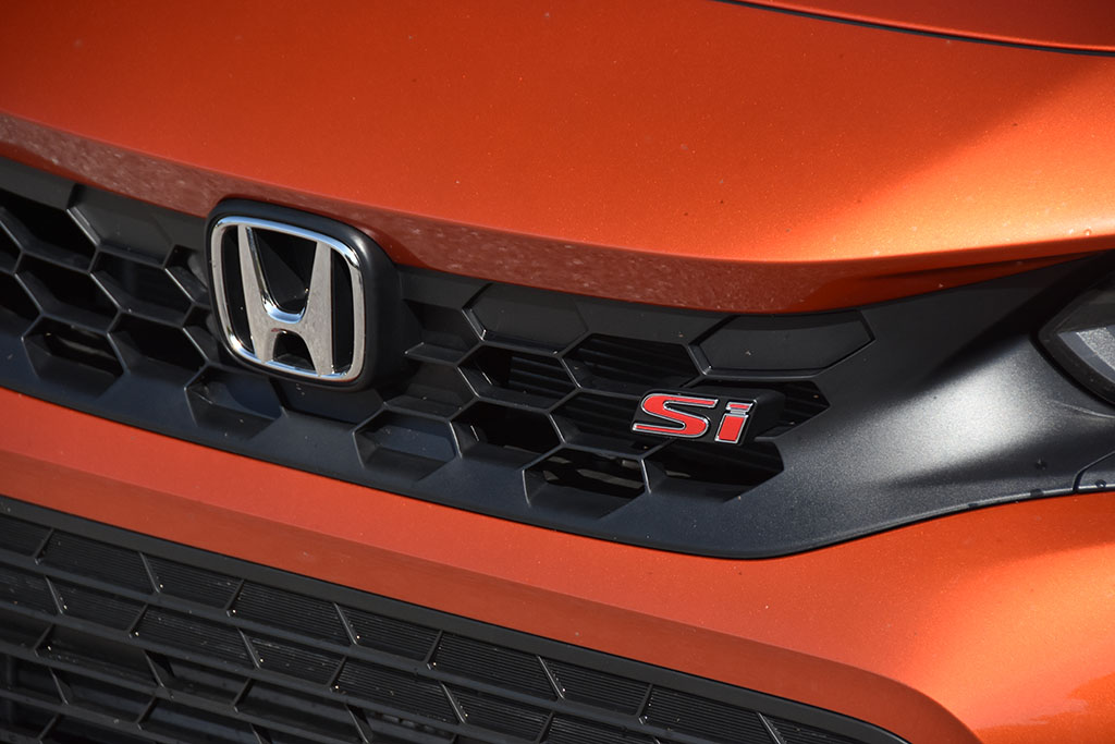 While the amenity content is somewhat cut short on the Civic Si, there are still enough features to avoid complaints and a unique style that starts with my Blazing Orange Pearl painted test vehicle, the 18-inch matte black wheels wrapped with Goodyear Eagle F1 summer high-performance tires, power sunroof, automatic high-beam LED headlights, and dual chrome exhaust tips. For the interior, the Civic Si gets the expected suite of standard active safety features, part of the latest Honda Sensing Safety tech, including adaptive cruise control, forward-collision warning, automated emergency braking, lane departure warning, lane keep assist, traffic sign recognition, rear seat reminder, and blind-spot monitors/warning.