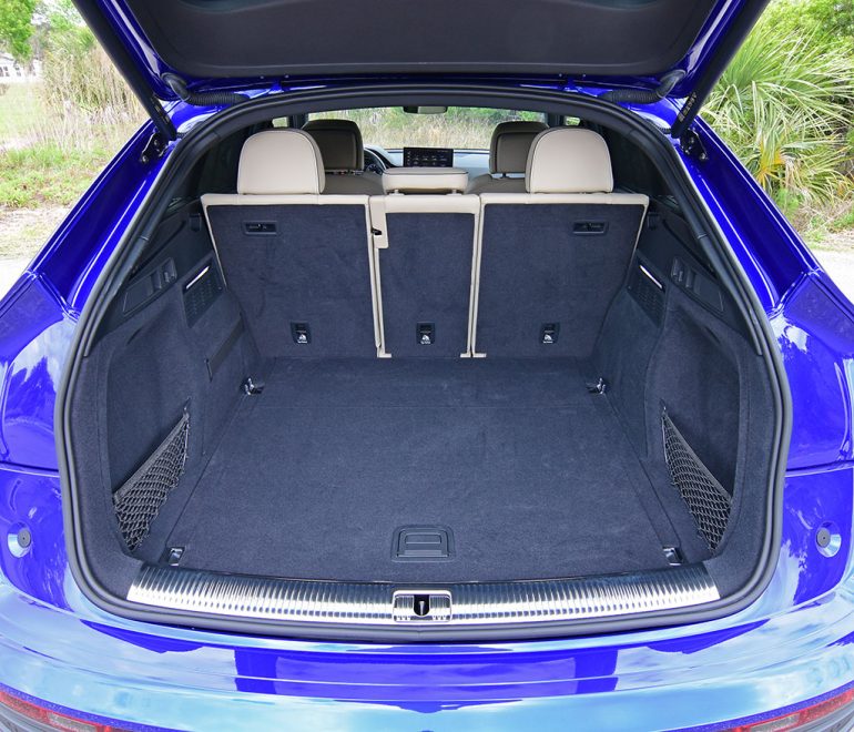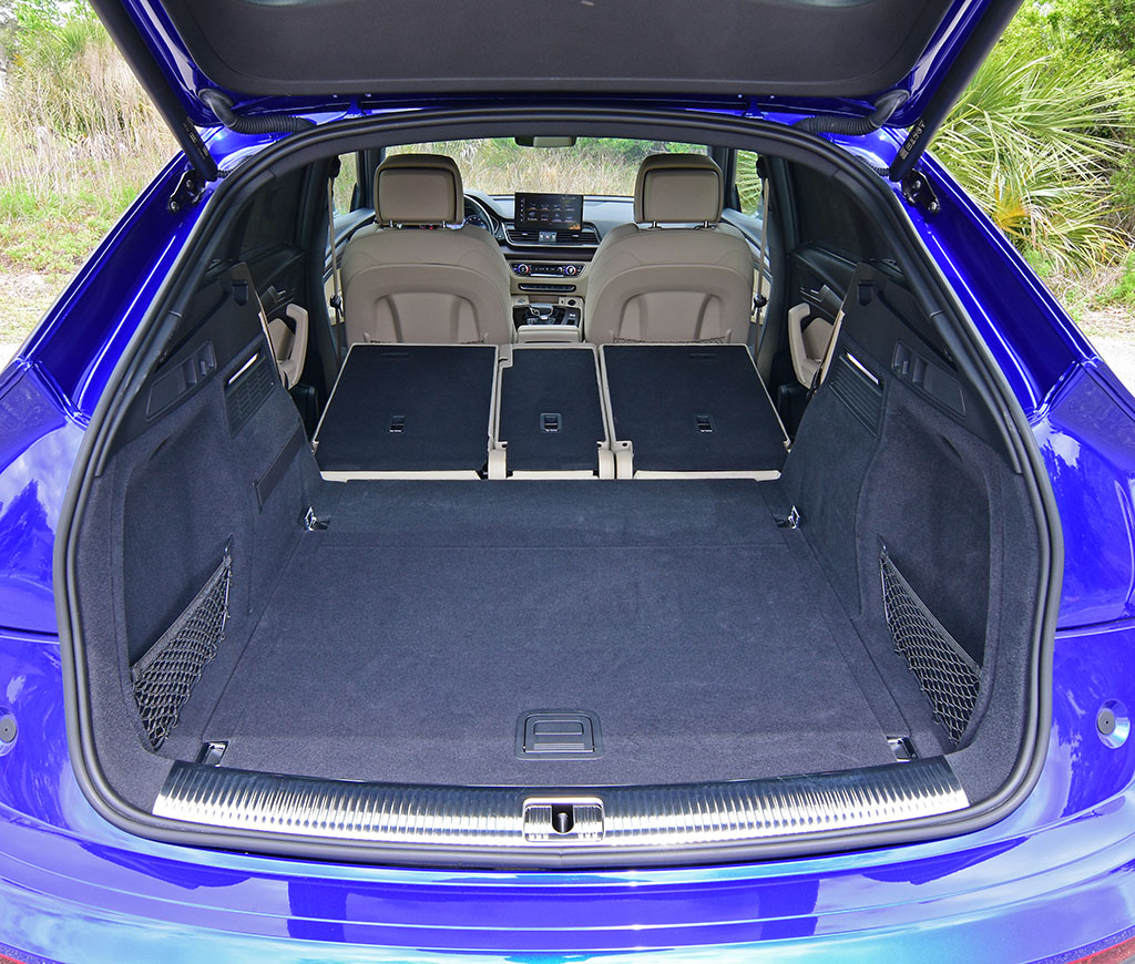 Cargo space is only cut short about one cubic foot from the normal Q5, having 24.7 cubic feet to work with behind the rear seats while the normal Q5 has 25.8 cubic feet. Folding the 60/40-split rear seatbacks down you have almost 52 cubic feet of cargo space.