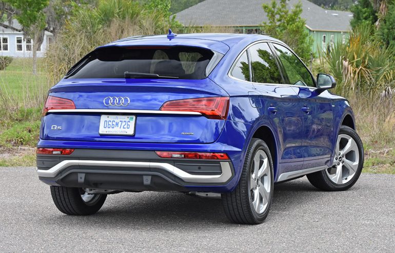 Taking the current Audi Q5 and re-sculpting the rear half is mostly what you get in the new Q5 Sportback, which isn’t a bad thing considering the Q5 has a lovely drivetrain and provides good accommodations with some luxury appointments inside. The Q5 Sportback is powered by the same engine in the Q5 45, a 2.0-liter turbocharged 4-cylinder with 261 horsepower and 273 lb-ft of torque. The engine is bolstered by a 48-volt mild-hybrid system, and all mated to a 7-speed dual-clutch automatic transmission with quattro all-wheel-drive. This is the only powertrain for the Q5 Sportback while the normal Q5 may be equipped with a less-powerful base engine with 201 horsepower (Q5 40 TFSI), or a more powerful 2.0-liter turbo in the SQ5 variant with 362 horsepower. Best of all with the design of the new Audi Q5 and Q5 Sportback, is that it is a rear-wheel-drive bias setup with a longitudinal engine mounting, mostly for better emissions control. Still, I like what Audi has done!