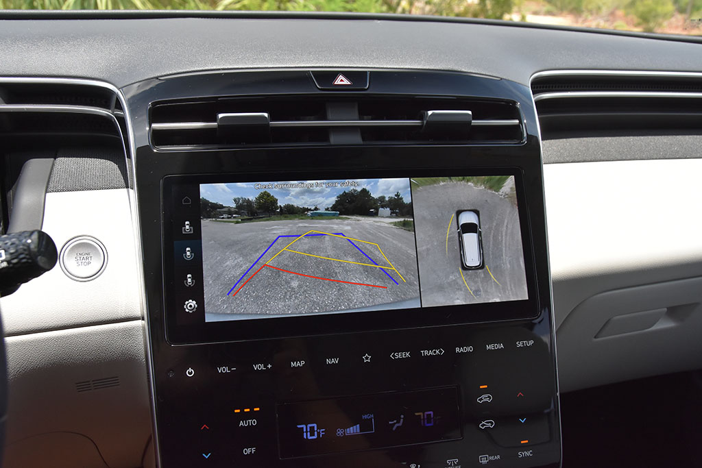 There’s a bevy of active safety features included for the new Tucson PHEV, which include adaptive cruise control, lane keeping system, rear collision mitigation braking, automatic emergency braking, 360-degree camera system, driver attention warning, safe exit assist, and the blind-spot monitor with a blind-spot camera system that displays a live video feed of the blind spot in the digital gauge cluster when you activate a turn signal.