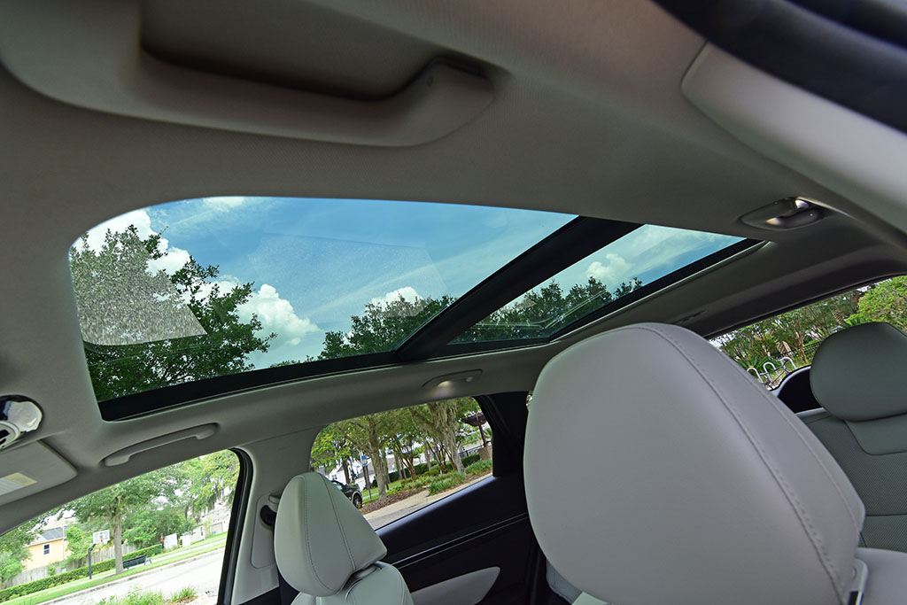 With a full charge of the smallish PHEV 13.8-kWh battery pack, you can get about 33 miles of all-electric range out of the Tucson PHEV. That range is dependent on many power consumption factors, such as the wise use of the dual-zone automatic climate control system that has a clever driver-only setting that is to be used when you have no additional passengers to conserve power.