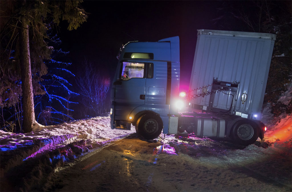 What occurs if a tire rupture causes a truck driver to lose control of their vehicle?