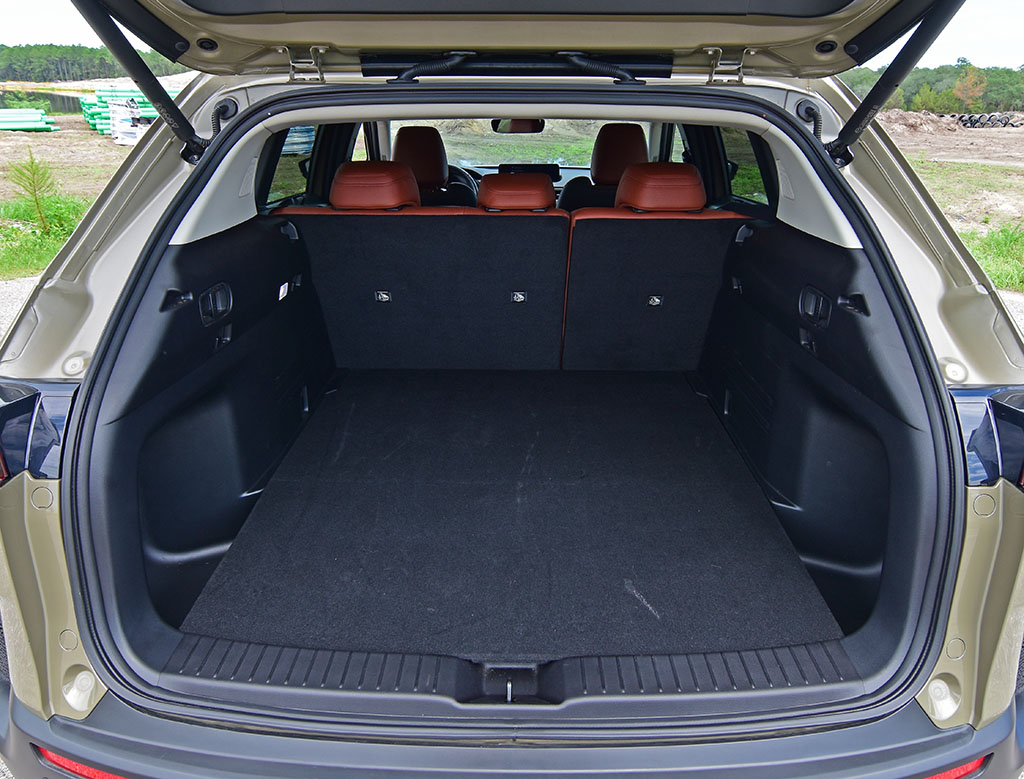 The cargo area is somewhat short on space from what you may otherwise expect in the larger-looking proportions of the CX-50 over the CX-5. You still have just over 31 cubic feet with the rear 60/40-split seatbacks up in place and just over 56 cubic feet with them folded.