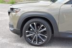 The new Mazda CX-50 is exclusively all-wheel-drive with a front-wheel-bias longitudinal engine setup for either of the two engine choices with the base trim level having a naturally aspirated 2.5-liter 4-cylinder with 187 horsepower and 186 lb-ft of torque. Moving to the turbocharged engine, the recommended powertrain, several upper trim levels get a twin-scroll turbocharger setup in the 2.5-liter 4-cylinder good for 250 horsepower and 320 lb-ft of torque when you use recommended premium fuel. Otherwise, you get 227 horsepower and 310 lb-ft of torque using regular unleaded.