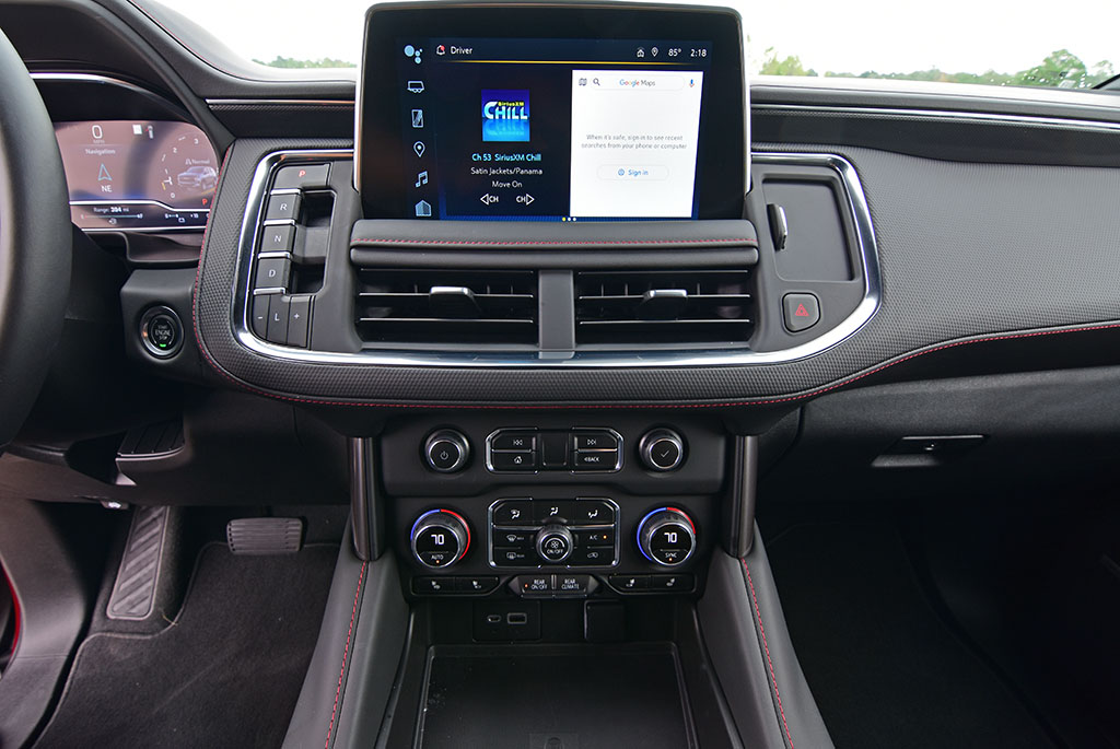 The engine and transmission combination, which are nearly perfected at this point for all the GM-brand large SUVs, work in harmony for welcomed compliance and an assured power output all through the RPM range. The Tahoe RST never feels like it needs additional power and the delightful rumble from the big V8 out the quad-tipped performance exhaust system that comes with the Sport Performance Package sounds just right. There’s nothing overly done about the Tahoe RST. It’s probably the nimblest SUV out of the pack of General Motors large SUVs, if you can call a vehicle of this mass such a thing. Still, the Tahoe RST with the magnetic dampers feels like the more agile sibling, which may only be outdone by its distant cousin, the supercharged Cadillac Escalade V that packs 682 horsepower.