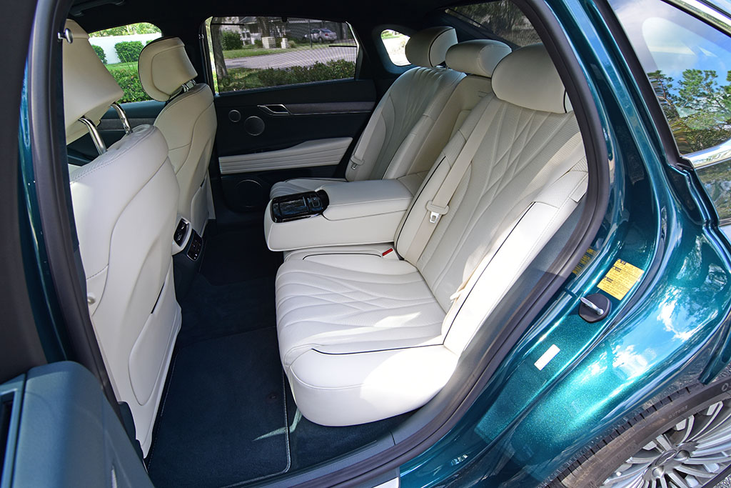 The gauge cluster of the G80 EV is a similar 12.3-inch 3-D digital setup as you find in the top-trimmed G80 ICE vehicles only the fuel gauge is replaced with a battery gauge. Oddly, there is no readout of the battery percentage in the digital gauge cluster. You must access the clever EV menu in the infotainment system to view the battery percentage along with other range information with the nearest charging station automatically displayed.