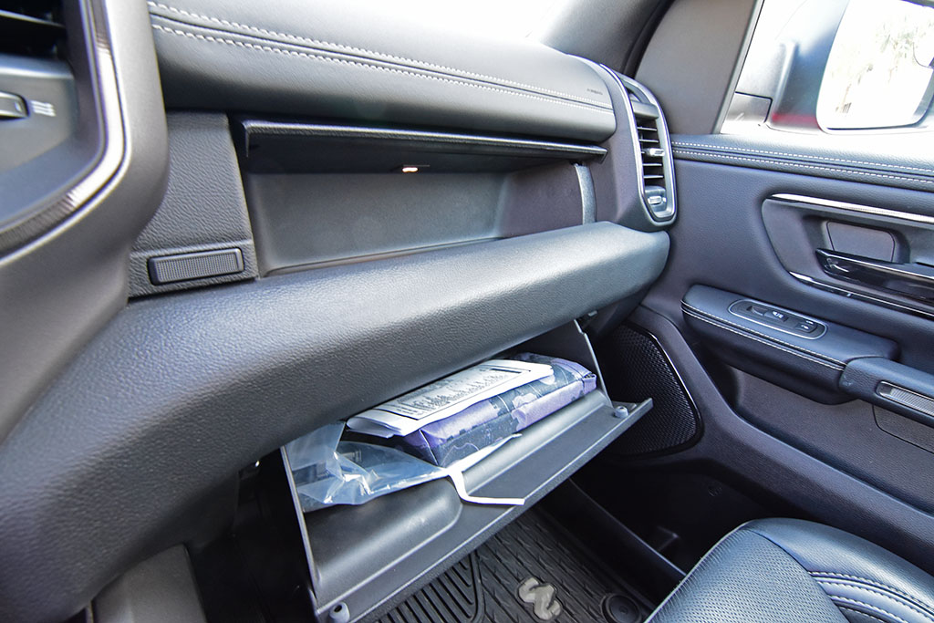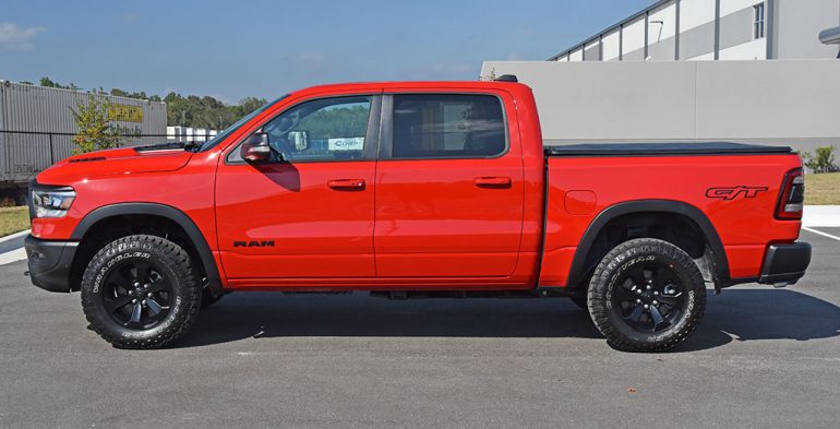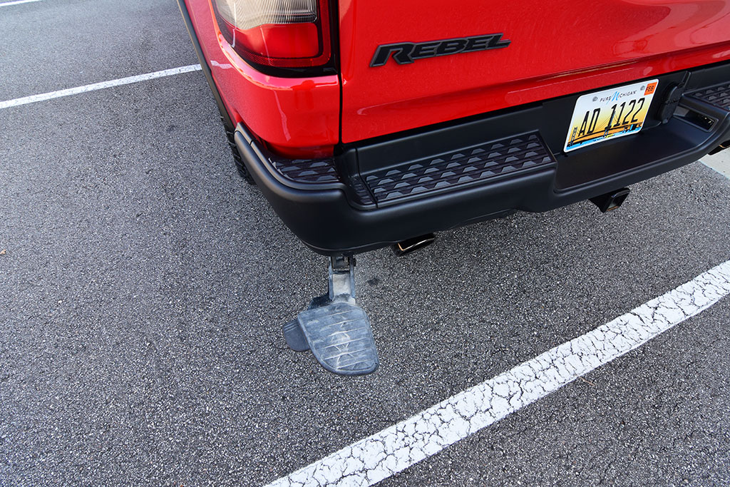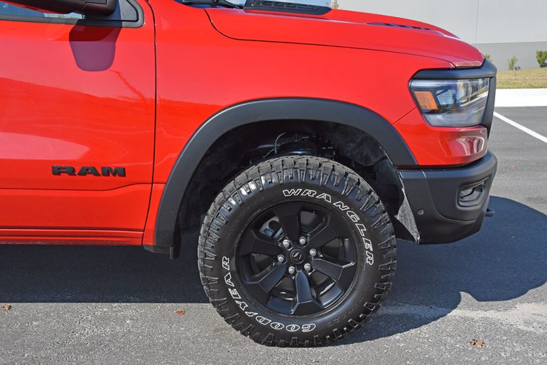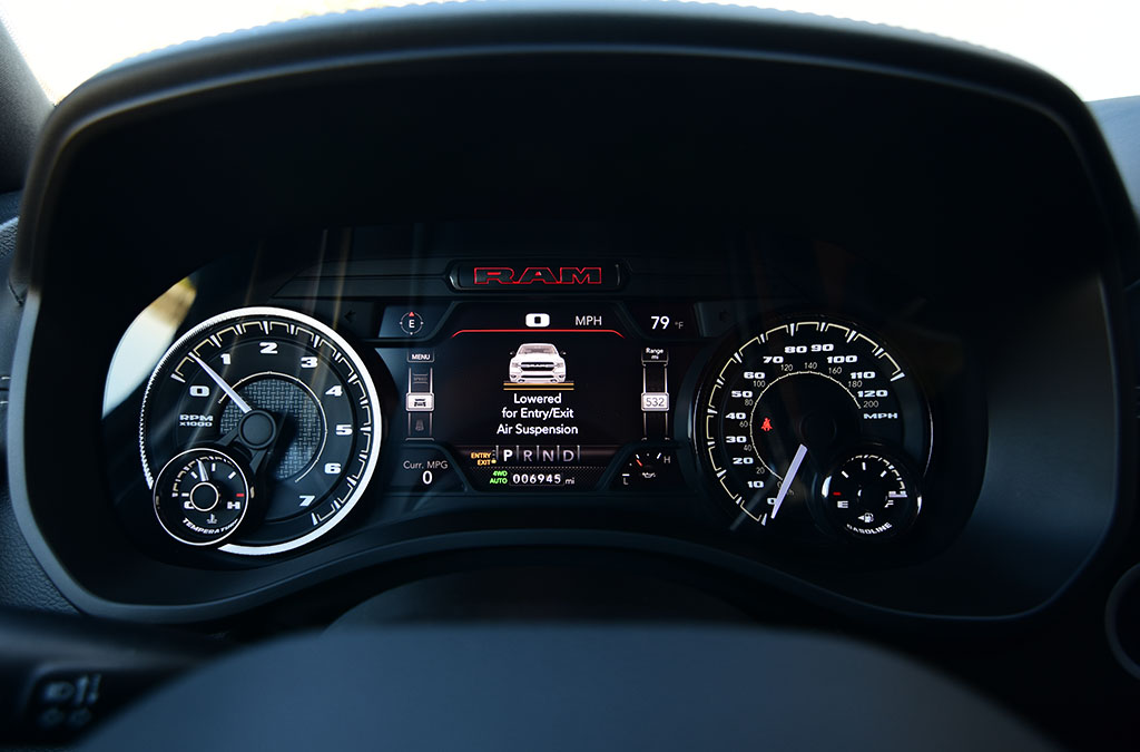 Riding on an air suspension system that you get on all Ram Rebel trucks, the ride quality is good and can adapt to various heights for proper ground clearance or easy entry/exit at a lower ride height that must be manually selected. The four-corner air suspension is a closed-loop setup that takes a while to make its height adjustments, but the appreciated aspect is that it will automatically lower to an aerodynamic height once you hit Interstate speeds. Though, again, lowering it to the easy entry/exit height must be done manually and there are no dedicated drive modes to enact the suspension heights. I do like the ability to lower the truck through a key fob button. You can add sufficient clearance for off-roading adventures in its highest mode up to 25 mph and then after that, it will automatically switch to the second-highest off-roading height. What was puzzling about my test vehicle is that it did not have any side steps, which is a major oversight. Even with the Ram Rebel having air suspension that lowers to an entry/exit height, it’s still a challenge for many to jump into the truck considering it has larger off-roading tires that keeps it rather high no matter the lower setting of the air suspension.