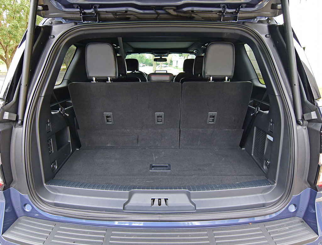 There’s a wireless charging pad that can be used along with wireless Apple CarPlay and Android Auto, which can also be paired via USB connection using either the standard USB or USB-C ports up front. Other notable tech features include the Pro Trailer Backup Assist, power-folding and rising third row-seat backs, and power-fold second-row seats.