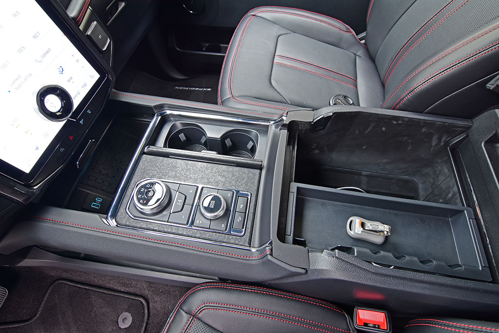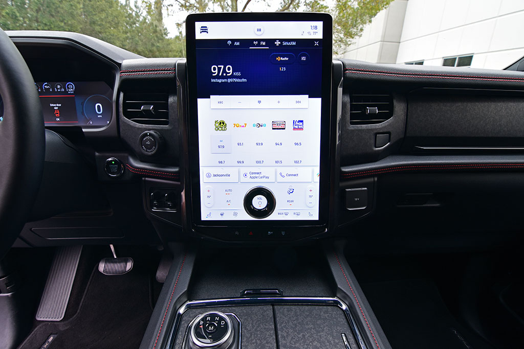 In terms of technology, Ford brings the highly praised 15.5-inch portrait-oriented touchscreen Sync 4 system from the Mach-E EV to the new Expedition as part of the higher trim levels and my Expedition Limited Stealth Performance test vehicle. The system is a welcomed focal point and means of accessing a plethora of vehicle functions, settings, and entertainment features. The only hiccup I found in the large screen is that using certain apps on your iPhone using Apple CarPlay may slow down and chop up audio playing from your phone. Also, there are seldom slow-to-respond functions through the screen. Otherwise, the system is a nice addition to the Expedition, and it looks at home integrated into the large dashboard and nicely accents the 12.4-inch digital gauge cluster.