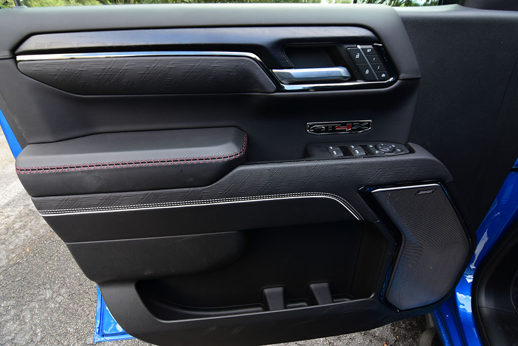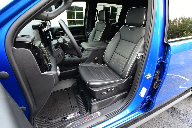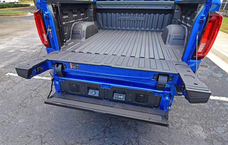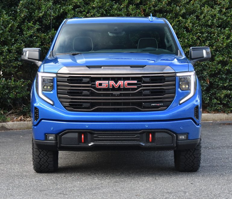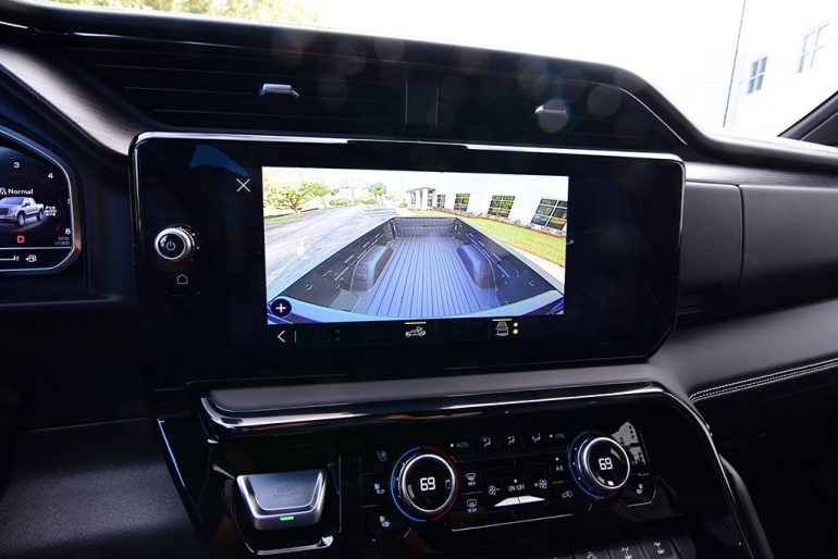 There’s a bevy of active safety features blanketing the GMC Sierra 1500 AT4X that all come as standard equipment, including blind spot monitors, forward collision warning/emergency braking, lane departure warning/mitigation, rear cross-traffic alert/emergency braking, and adaptive cruise control. The one issue I find in the GMC Sierra AT4X in the area of safety is the diminished visibility out the front over the hood. The hood area is higher than other full-size trucks and often forces you to pull up the convenient 360-degree camera system with a bed view that can be activated at any time to view out front, which also aids when going over difficult-to-navigate terrain. The virtual rearview mirror is also a nice touch for a live high-definition digital camera-feed view out back displayed in the rearview mirror.